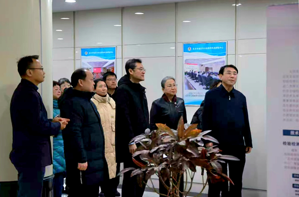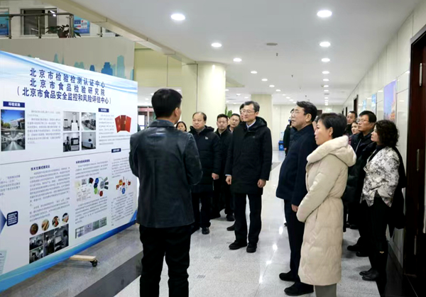 于军一行来到北京市食品检验研究院,听取耿健强院长关于开展食品安全抽检工作情况的介绍。代表与工作人员围绕全链条质量管控、加强食品安全监管等议题进行了交流探讨。